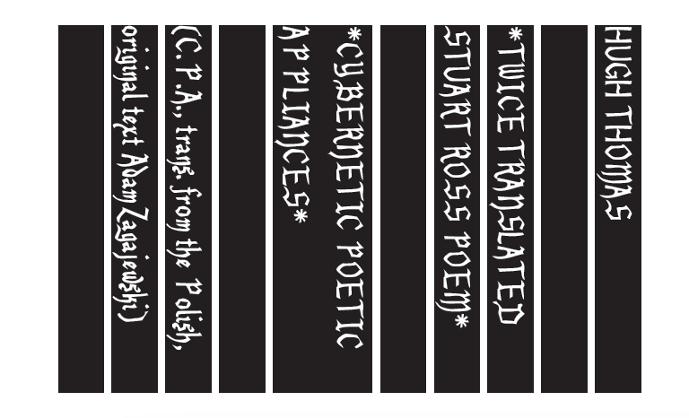 •I’m beginning to publish micro-poetry zines again this winter, with two titles (#s 7 + 8) forthcoming—and one is by the inimitable Hugh Thomas!!!! I’ll post more when I decide to ‘launch them’ proper. Many from this season will be in, gasp, full-colour, so they’ll be $3 instead of $1. I have just a handful of bundles of books 2-6 from many years ago leftover, which I’m selling for $6 (including shipping within Canada), so if you’re into ephemera, come and get it.
